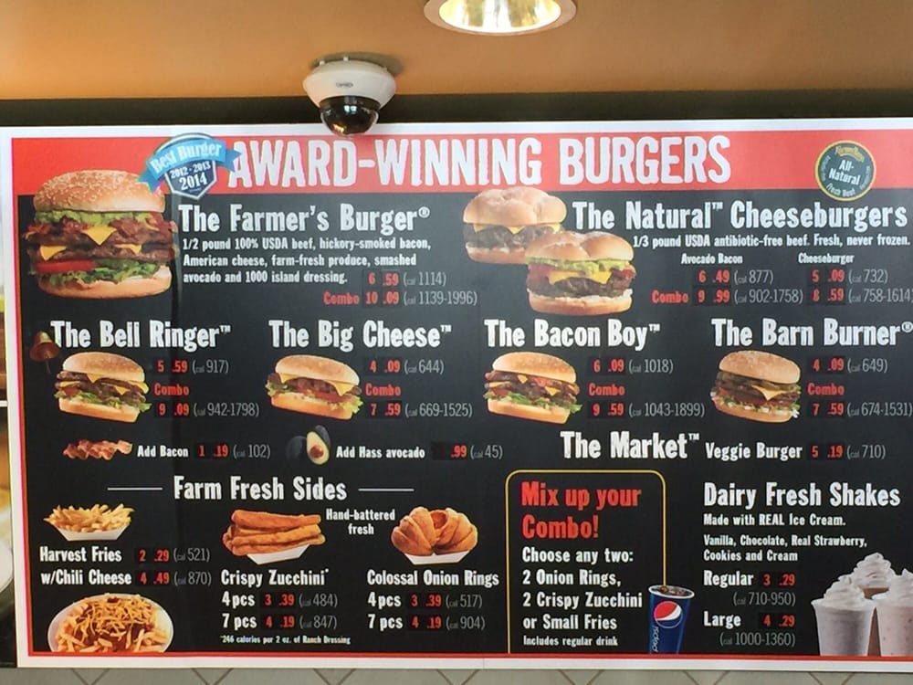 The Natural Avocado Bacon Cheeseburger is a fresh, never frozen 1/3 lb. pure beef patty made from beef raised without antibiotics and no added hormones ever, and topped with hand-smashed Hass avocado, 2 slices of American cheese, thick hickory-smoked bacon, diced onion, house-made 1000 island dressing, and dill pickles on a locally baked toasted brioche bun.
